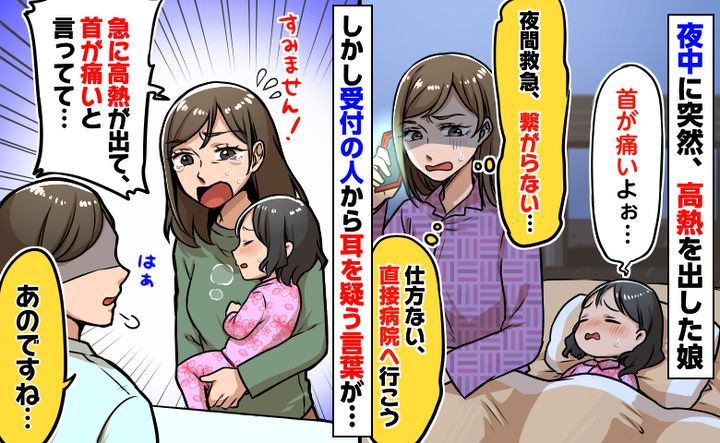 娘が夜中に高熱と首の痛み「夜間救急に繋がらない…」やむを得ず駆け込むと、受付で耳を疑う発言をされ
