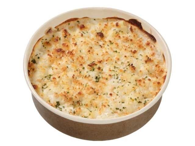 原材料価格等高騰により、推奨売価(税抜)323円から330円に変更。牛乳のコクやチーズの旨味を感じられるホワイトソースに4種のチーズをかけて焼き上げたグラタン。