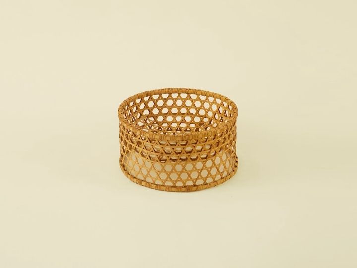 底上げされた形の竹籠は、熊本県の古いもの。青々しさが抜けた、経年変化を感じる竹製品には、他の素材にはない独特の魅力を感じます。これは目籠のように食器を乾かしたり、野菜などを入れて保存するにも通気性が保つことができ、機能面に優れた設計。特に、四季のある日本では、柑橘類や芋類など、その時期の野菜や果物を入れて置かれた姿がとても美しいです。他の用途としては、玄関でスリッパ入れとして使うのもいいかもしれません。