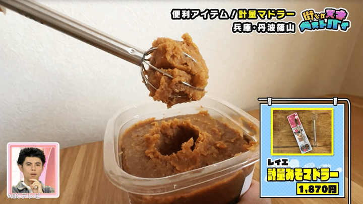 直売所の女性のベストバイは、みそ汁作りに重宝している軽量みそマドラー。彼女いわく、「おみそをキュッとやれば、ちょうど1人分とか2人分とかすくえて、そのまま溶かせる。使っていてすごく便利です!」とのこと。このマドラーはみそだけでなく、卵をかき混ぜる泡だて器としても使えます!