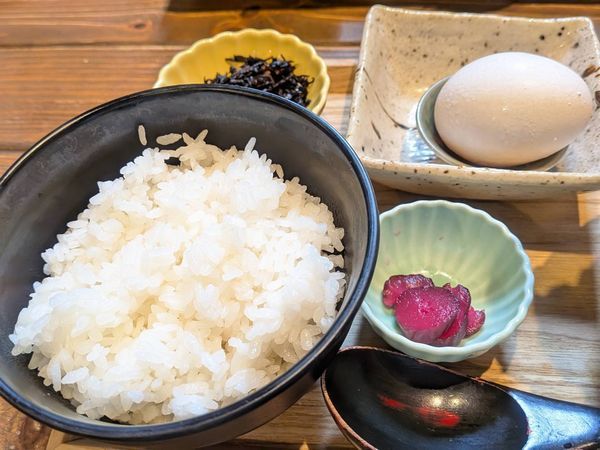 副菜のひじきやお漬物、納豆か生卵を選べますが、今回、私は生卵をセレクト。