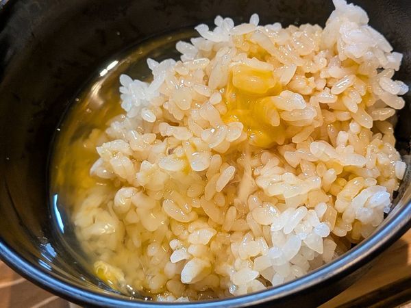 最後はもちろん、卵かけごはんでしめました。うわ~ごはん大盛りにしたらよかった~!!