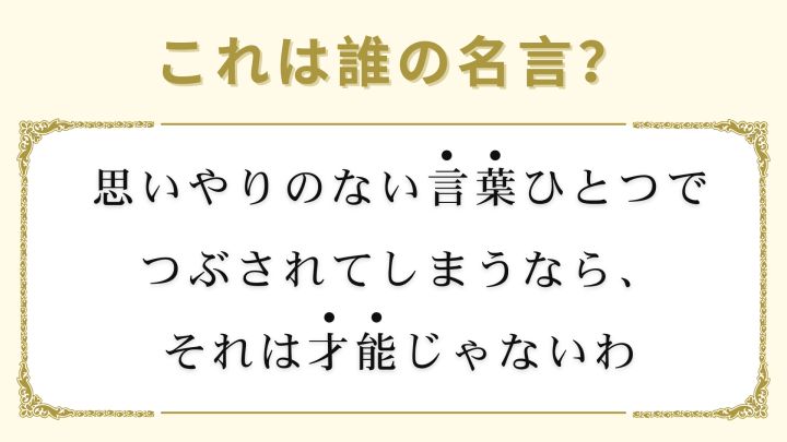 「思いやりのない言葉ひとつでつぶされてしまうなら、それは才能じゃないわ」は誰の名言でしょうか?
