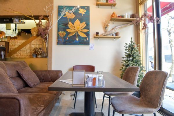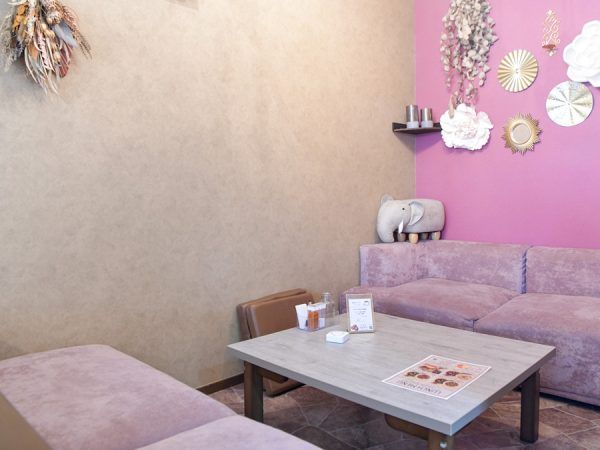 ピンクのソファーが可愛い、小上がりの半個室もあります。 2人用のテーブル席には、隣のテーブルとの間にロールカーテンを降ろしてくださいますので、こちらも半個室気分で食事ができます。2階にはキッズスペースもあるようなので、小さなお子さんとの食事が安心してできますね。