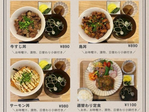 ランチのメニュー表です。 お店に許可をいただき、掲載させていただきました。 今回、週替わり定食を注文しました。 右下の週替わり定食の画像を良くみておいてくださいね。