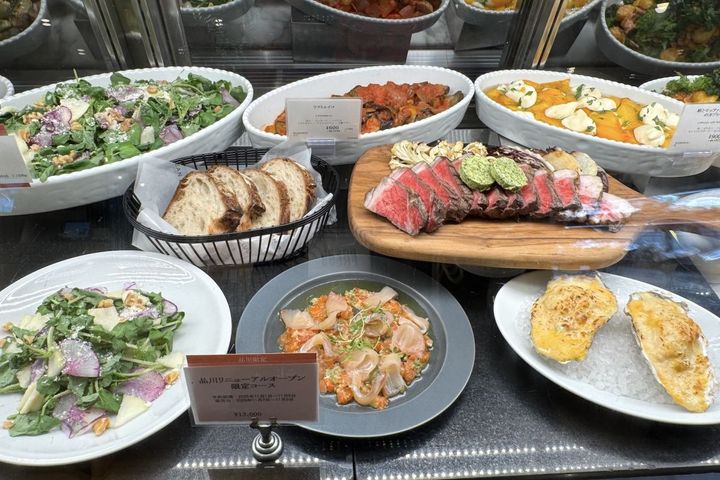その一例が「静岡県産富士山サーモンのタルタルとホワイトサーモンのマリネ 江戸前ハーブ添え」100g1296円、「Ome Farmのバターナッツカボチャと長崎県小長井産牡蠣のグラタン」、「北海道十勝若牛のサーロイングリル 埼玉県FENNELのヨーロッパ野菜を添えて」など。期間限定でセットメニューとして販売されたり、もちろん単品でも買えます。