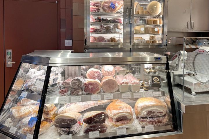 ワインショップの一角には国内外から選りすぐりのハムやシャキュルトリー、チーズなどを量り売りで販売。併設の大理石のカウンターは、ワインを試飲しながら、切り立てのハムやチーズが味わえる角打ちコーナー! これからの季節、ホームパーティでのワイン選びに、また仕事帰りや、新幹線の待ち時間に一杯、なんて使い方もできそうです。