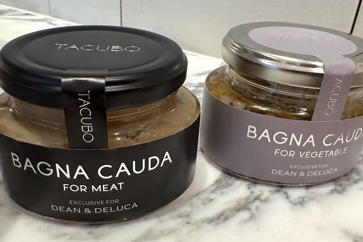 黒いラベルは、なめらかなペースト状の「TACUBO バーニャカウダ」肉用。グレーのラベルは、ニンニクの食感を残した「TACUBOバーニャカウダ」野菜用。