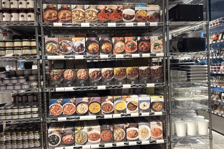 何かと忙しい毎日、でもとびきりおいしいものを食べたい!という願いをかなえてくれるのが、上から下まで、ぎっしり並ぶレトルトカレーやラグーソース、スープなどが並ぶ棚です。