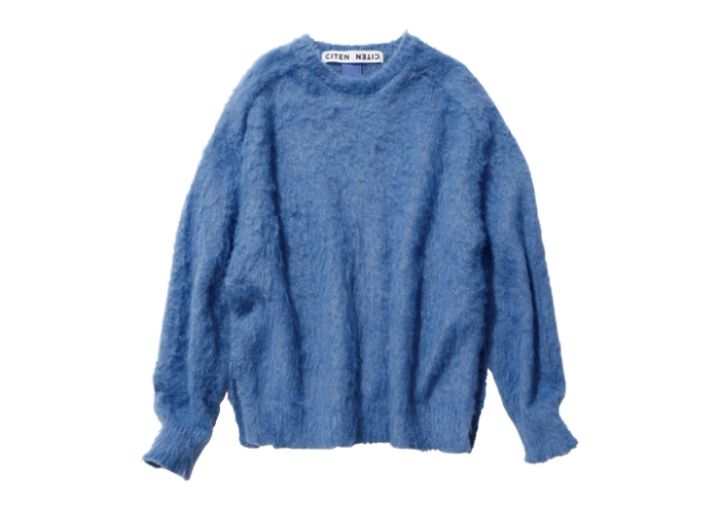 定番ニットは、ふわふわ質感と落ち着いたブルーで差をつけて。体が泳ぐシルエットも◎。ニット¥5,940/ともにCITEN(ユナイテッドアローズ)