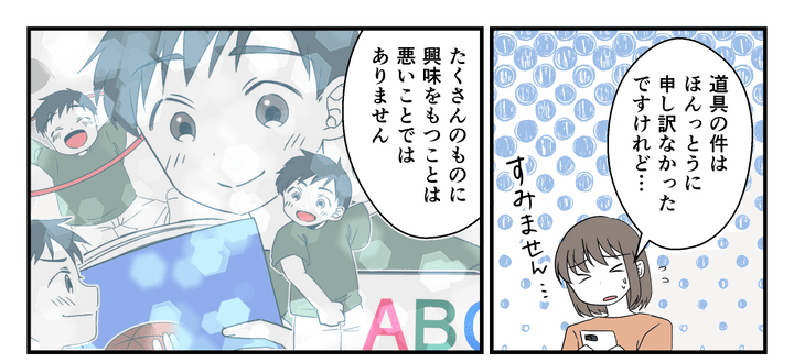 だからこそ、マサが赤ちゃんだった頃に偶然聞いた占い師さんの言葉「いろいろなことに興味をもち、満足したらやめる。でもそれが経験となって積み重なっていく」という価値観は、私自身の気持ちも、子どもの気持ちも救ってくれるものだったのです。息子から「やめたい」と言われるたびにちらりと思い出していました。でもまさか義母から横ヤリが入るとは……。