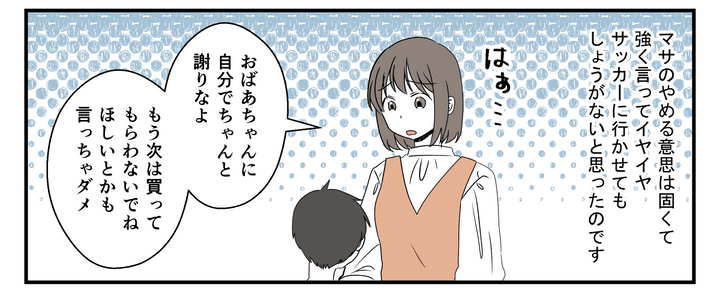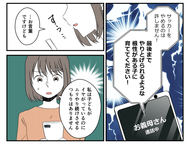 そして、「サッカーをやめることは許さない。最後までやりとげる根性のある子に育ててほしい」と言い切ったのです。私は謝罪と、自分なりの親としての考えを義母に伝えることにしました。