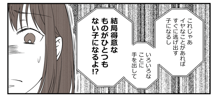 このままでは、マサがイヤなことからすぐに逃げる子になってしまう。いろいろなことに手を出しても、何も続かず、得意なものがひとつも育たないのではないか……そんな不安が義母のなかに広がっているようです……。義母は私を責め立てるように言いました。