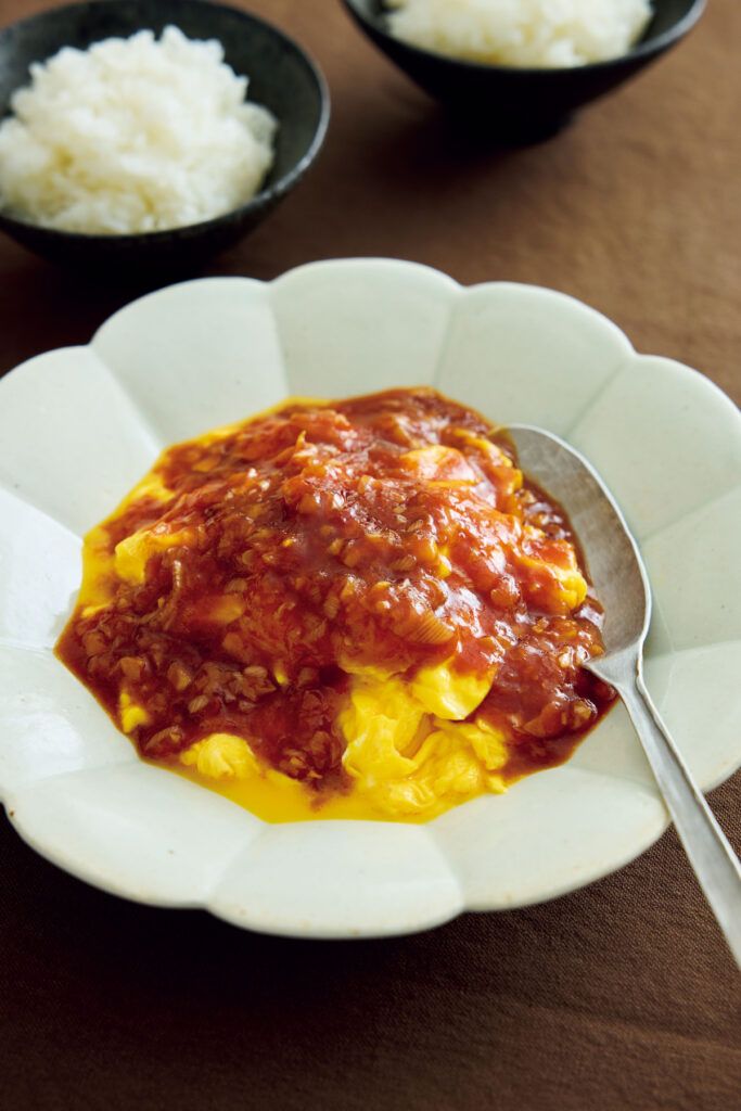冷蔵庫に卵があれば、それだけで頼もしい。 ふんわり半熟の卵にピリ辛チリソースをかけて、ごはんがすすむメインおかずに。肉も魚も使わず、大満足の一皿です。