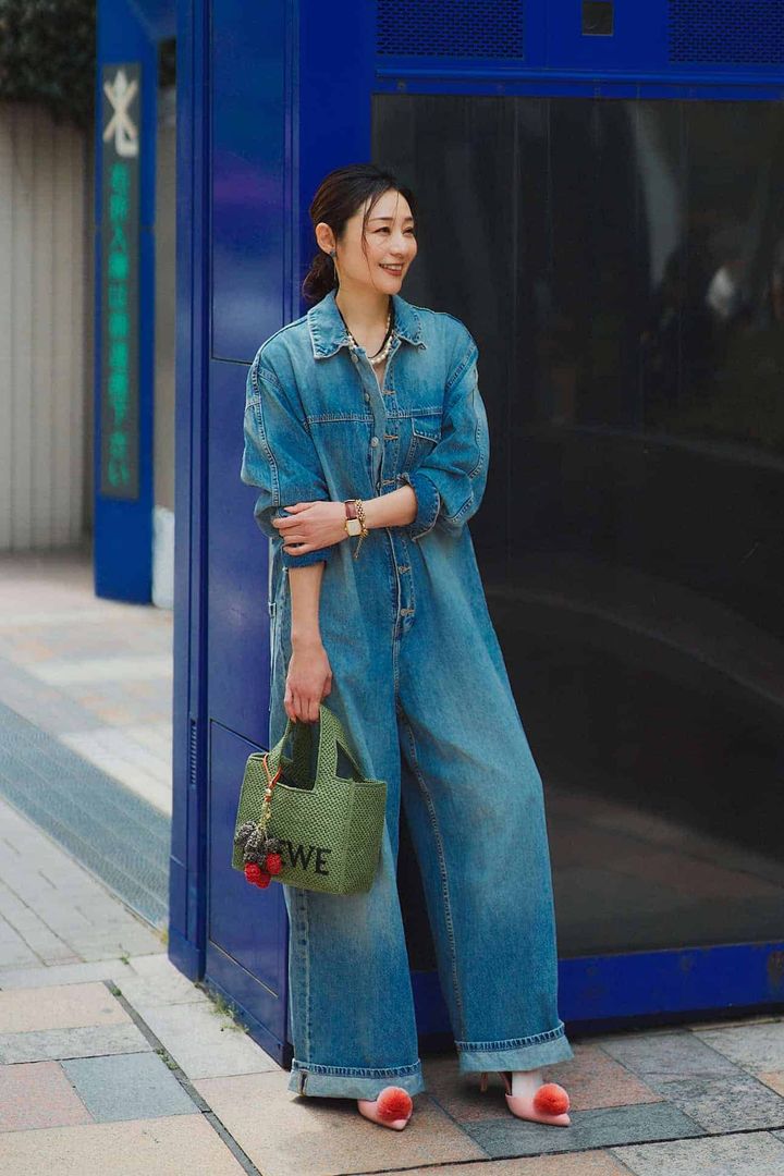 寒暖差のある季節には、オールインワンの出番が多いです。暑くなると上半身を脱ぎ、袖をベルト代わりにして穿けるので意外にも万能選手。単調に見えないように、ピンクのシャツとヒールを投入、グリーンのバッグで色のアクセントをプラスしました。がむしゃらに仕事をした40代を卒業し、ゆっくり生きることにした50代。洋服もカチッとしたものから、動きやすく締めつけないゆったりしたファッションに移行しました。年齢を重ねるごとに、内面が現れてきます、それはファッションも同じ。気持ちの余裕に伴って、ファッションも幅広く自分らしく、がモットーです。