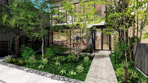 前庭に広がる木々は、埼玉で自生している品種からセレクトされているそう