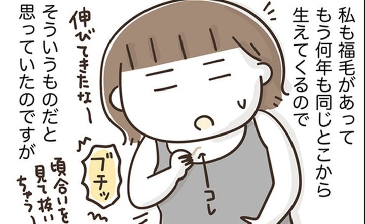 イラストレーター&マンガのフカザワナオコさんによる、アラフィフ女子の日常を描いたマンガ。今回は福毛についてお届けします。