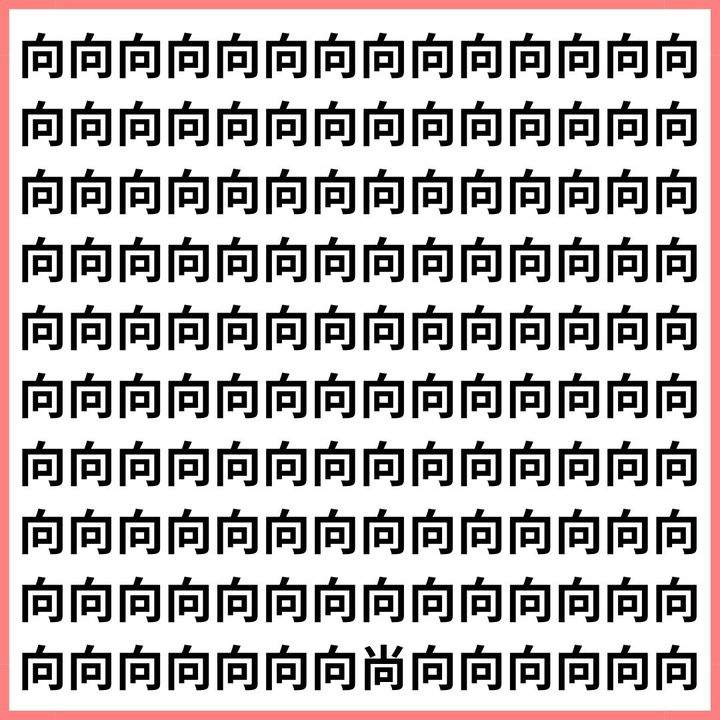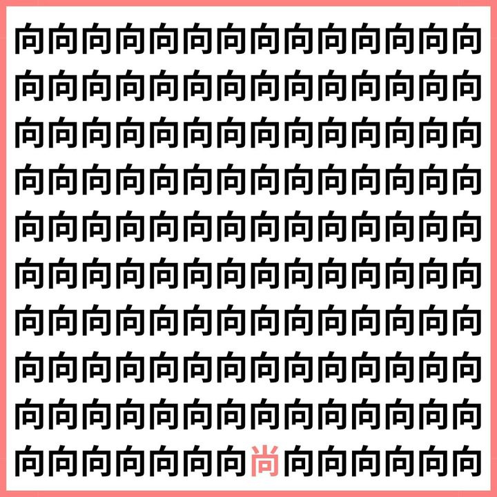 たくさんの「向」の中に、1文字だけ違う漢字が混ざっています。