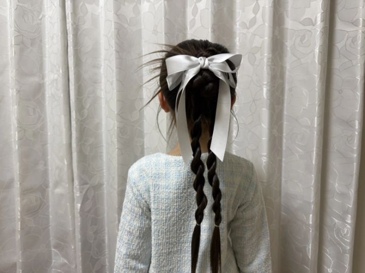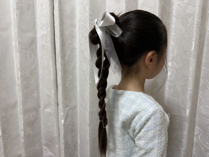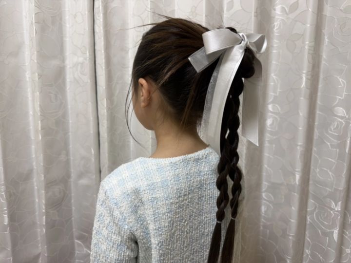 最後にヘアアクセをつけてあげたら完成です!今回はスリーコインズのリボンアクセを使いました♪