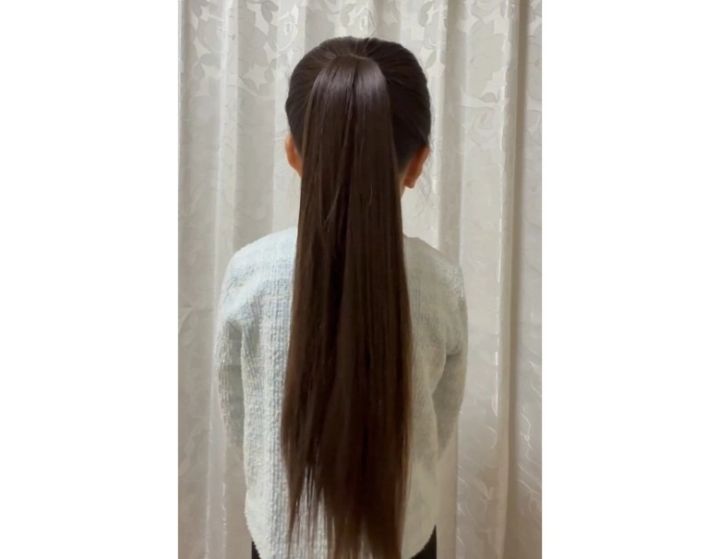 ⑤ ④を毛先を長めに残してゴムで結ぶ