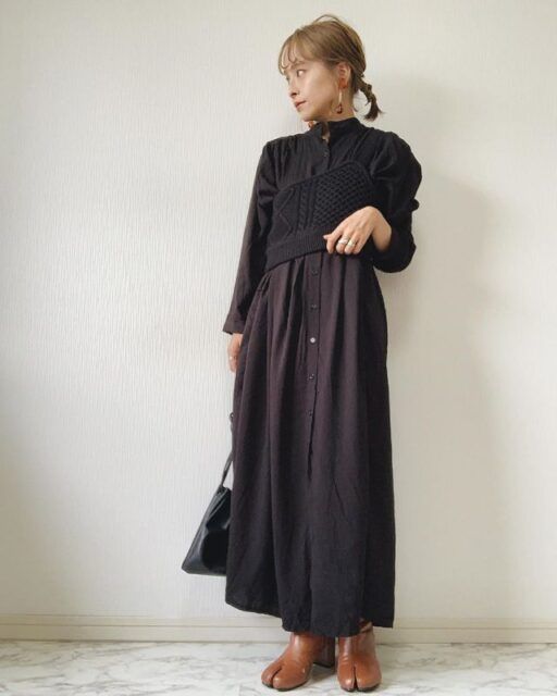 黒コーデに馴染みがよく目立ち過ぎないのが「ベージュ~ブラウンの靴」。茶系カラーには落ち着いた印象がありオールブラックコーデにハマります。茶系であればキャメル・モカ・ダークブラウンなど、どんな色でもOK。特に秋冬シーズンにおすすめの組み合わせです。