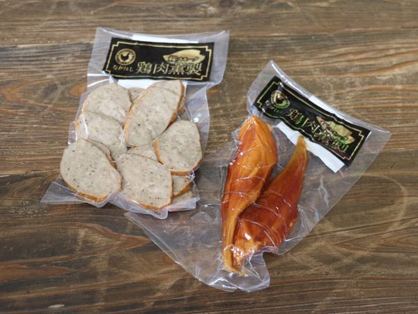 「鶏肉のソフトサラミ 黒コショウ」380円(写真左)、「燻製ササミ」316円(写真右)