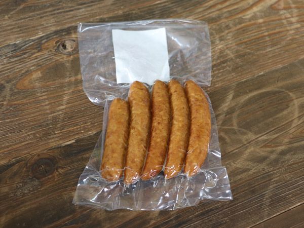 「鶏肉のソーセージ」は、豚肉のソーセージよりもあっさりしていて、脂っこいのが苦手な人でも食べやすいんだそうです。肉の味がしっかりしている親鶏をミンチにしているので、うま味もあって鶏肉の良さが出ている一品。