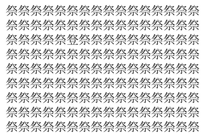 【脳トレ】「祭」の中に紛れて1つ違う文字がある!?あなたは何秒で探し出せるかな??【違う文字を探せ!】