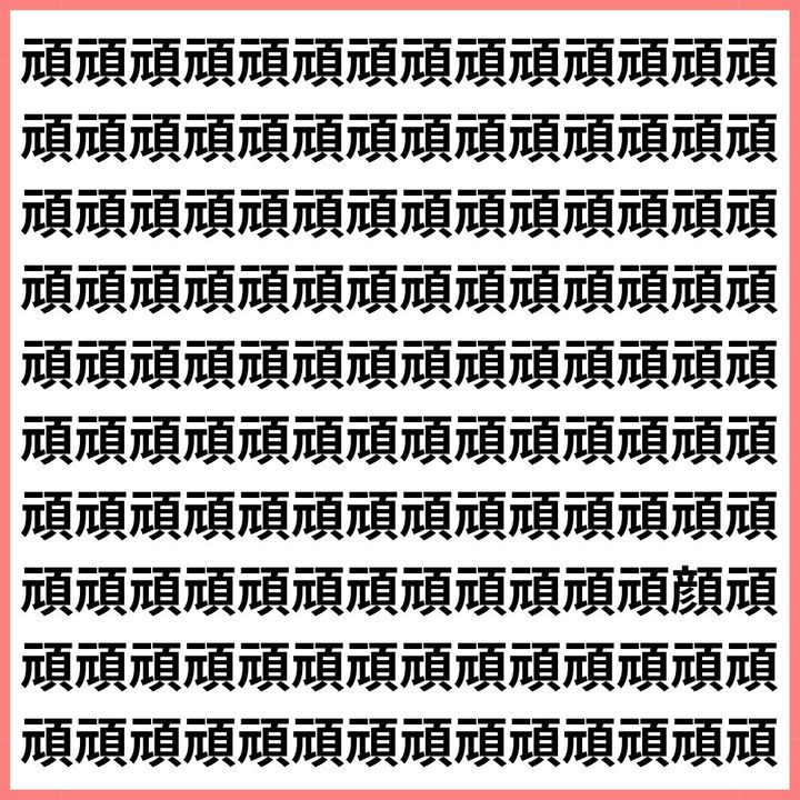 たくさんの「頑」の中に、1文字だけ違う漢字が混ざっています。