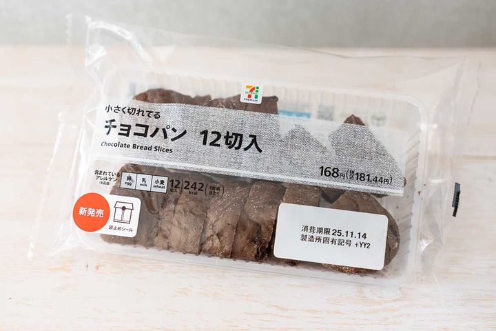 セブン-イレブンは2025年11月11日(火)に、「セブンプレミアム 小さく切れてるチョコパン 12切入」(税込181.44円)を発売しました。