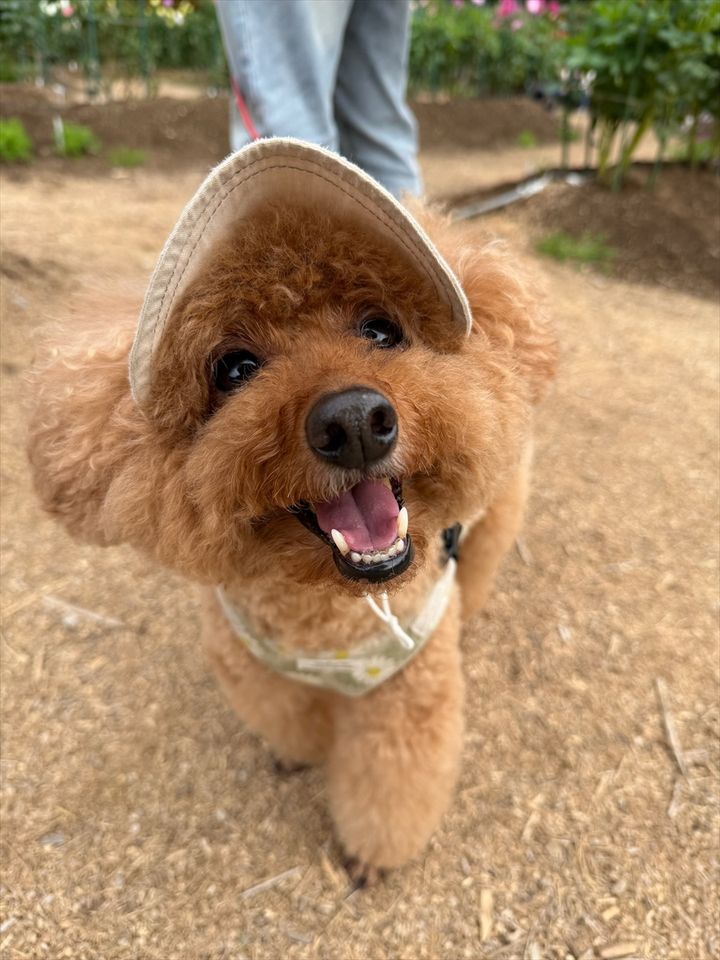 喜色満面のこの子は、トイプードルの『プーチン』ちゃん。 公園をおさんぽしていたところ、前から歩い来たおじいさんから帽子をかぶっている姿をほめられたそう。 確かに帽子もすごく似合っていて、かっこいいですね!