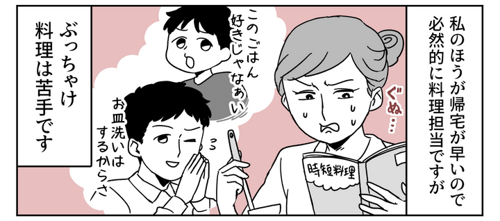 私はアサミ(32)。夫のセイジ(33)と息子のカズ(6)と3人で暮らしています。私も夫も正社員で働いていますが、料理の担当は私。夫はお皿を洗ってくれたりはしますが、買い物なども私の担当です。私のほうが早く帰宅するのでこうなってしまいましたが……。実は私は料理が好きでも得意でも何でもありません。