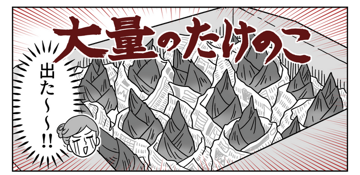 中身は、たけのこでした。それも、新聞紙にくるまれて大量に……。