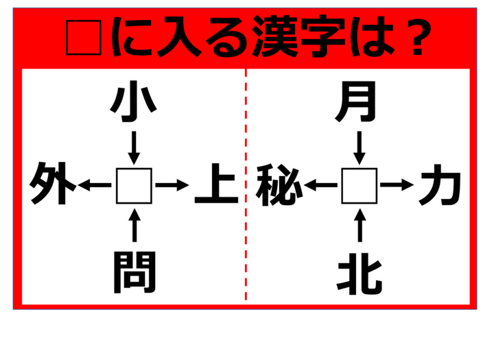 【漢字パズル】小□、□外、問□、□上 □に入る漢字は何でしょう!?