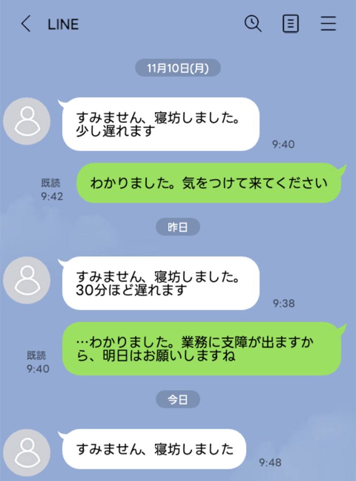 3. 新人「すみません、寝坊しました」3日連続で届いた報告LINE。部長の返信に社内がざわつく【短編小説】