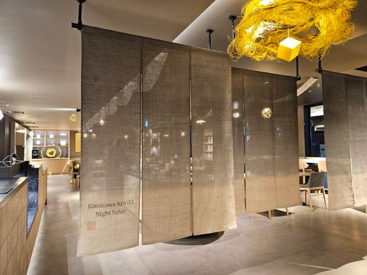 なんとも幻想的で美しいい空間演出がお目見え! 「OMO5金沢片町」では伝統工芸が彩る空間でゆったりと加賀棒茶とお菓子がいただける「金沢KOGEIナイトサロン」が毎夜開催されています。