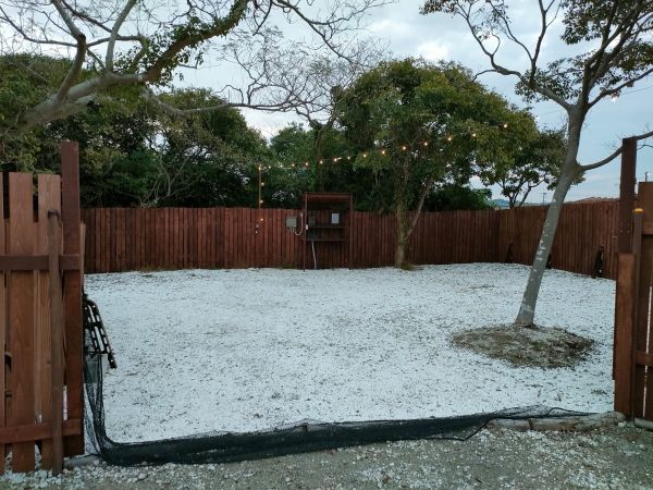 こちらは芝生でなく白い砂利を敷き詰めたサイト。