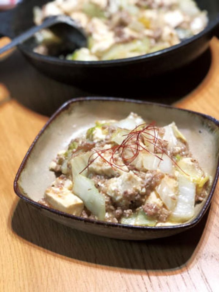 ④食べやすい大きさに切って冷凍した白菜150gを加え、さらに煮る。塩小さじ1/4、オイスターソース小さじ2で調味し、水どきかたくり粉(かたくり粉小さじ1+水大さじ1)でとろみをつける。