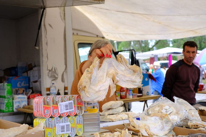 週に一度開かれる野外マーケットでは、旬の野菜はもちろん、サラミやハム、チーズ、バカリャウと呼ばれる干しだらを売る専門店のほか、ベーカリー、焼き菓子店など、食いしん坊の目が輝く店がずらりと並ぶ。お昼は家で食べることになっており、お父さんがそのための買い物に悩んでいたので、私が目をつけていた鮮魚店の新鮮なイワシを薦めた。