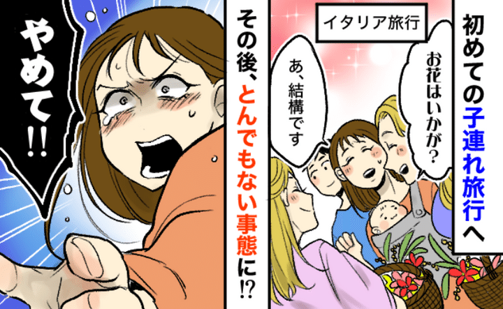 私は夫の転勤によりイギリスで長男を出産。そして長男が生後6カ月のころ、初めての家族旅行として飛行機でイタリアを訪れました。初の子連れ旅行を楽しんでいた私たちでしたが、最後に恐怖の事件が待っていたのでした。