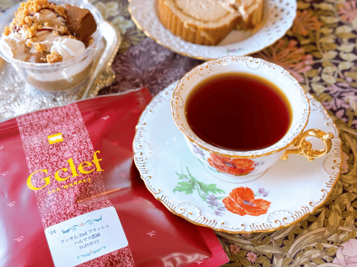 紅茶のパフェやロールケーキと合わせたのは「アッサム 2ndフラッシュ ハルマリ農園」(Gclef ジークレフ)です。アッサムも種類が多く、農園によって色んな味わいが楽しめますよね。紅茶の中でも、特にアッサムのミルクティが大好きなので、お気に入りの紅茶店でアッサムを探すのが好きです。今回は、ジークレフの店舗でスイーツと合わせるのにおすすめしていた、ハルマリ農園のアッサムを試してみました。