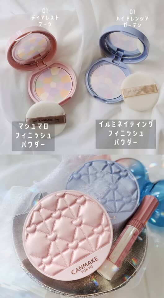 ▲キャンメイク(左)「マシュマロフィニッシュパウダー」 01ディアレストブーケ ¥1,034(税込)、(右)「イルミネイティングフィニッシュパウダー」 01ハイドロレンジアガーデン ¥1,034(税込) ※限定パッケージ