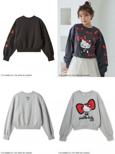 ハローキティと20周年を迎えたSNIDELとのスペシャルコラボレーションアイテム。カラーと柄違いで選べる3バリエーション。シンプルなものから着映える絵柄まで、好みで選べるのがうれしい。