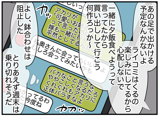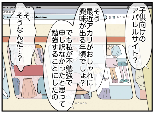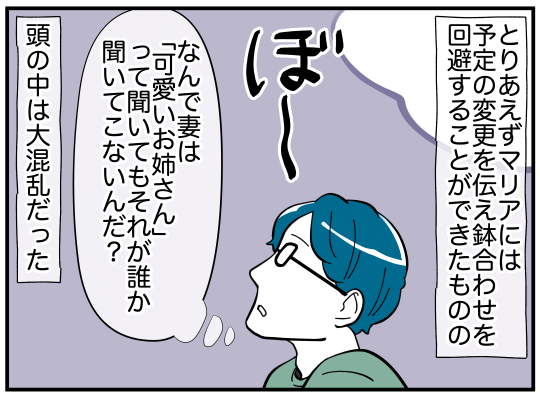 矢部マリアから服や髪飾りをもらっていることを、ゲーム感覚で秘密にしていた娘。しかしさすがの主人公も、娘の服が増えていることに気がつく。そしてついに娘も「可愛いお姉さん」という名前をこぼしてしまうのだった…