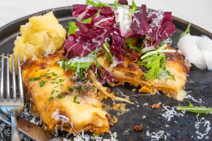 ラザニアの中には地物野菜もたっぷり。レンコンの食感が楽しいアクセントに