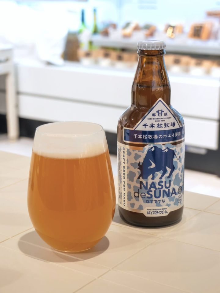 最後にご紹介するのは、那須塩原のクラフトビール「なすですな」と千本松牧場のコラボによる「なすですな ホエイビール™」。チーズ作りでできるホエイを使った、まろやかで優しい味わいのユニークな一本。ダイエット中でも罪悪感少なく飲めるかも……?