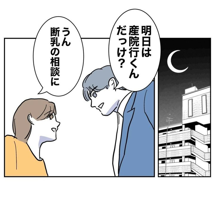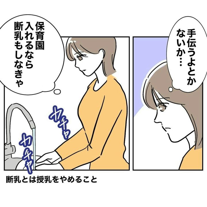 ただ、まいが復職に際して断乳の相談に行くという点については「車を出すよ」と積極的です。ただここでも「手伝わないと」という意識なので、夫の様子では今後もまいはいろいろと苦労しそうな予感しかないですね。
