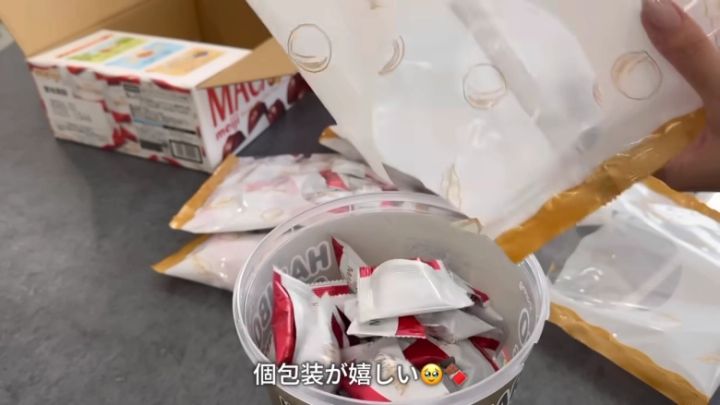 マカダミアチョコレートはひとつずつ包装になっているので、食べすぎも防げそうです♪ayaさんは別の容器にまとめて入れ替えているそう。