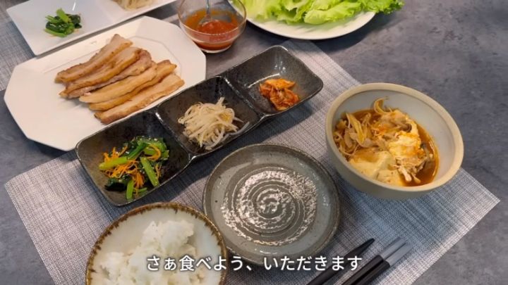 サムギョプサルは、フライパンで焼くだけで完成!サンチュにくるんでいただきましょう。身が分厚いので、しっかりとした食べ応えがあるのも魅力的ですね。