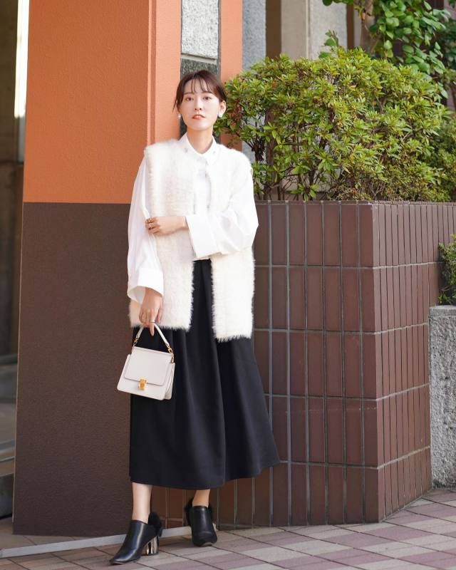 おしゃれさんのお手本スナップを調査していると、白シャツの上にベストを羽織るコーデを楽しむファッショニスタが多数! プレーンな白シャツだからこそ、こういったデザイン性のある羽織りアイテムも難なく合わせることができるんです。